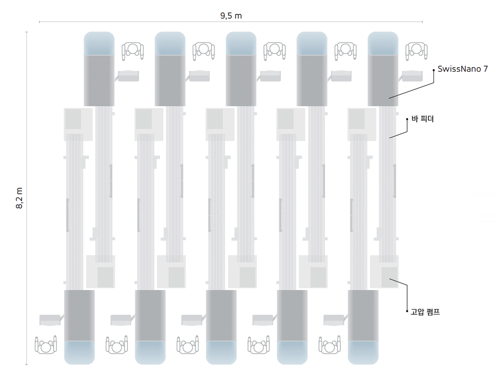 10mm 바(Bar) 용량과 무소음 작동, 완벽한 구성 유연성을 통해 좁은 공간에서도 거대 공장 수준의 생산량을 구현합니다.